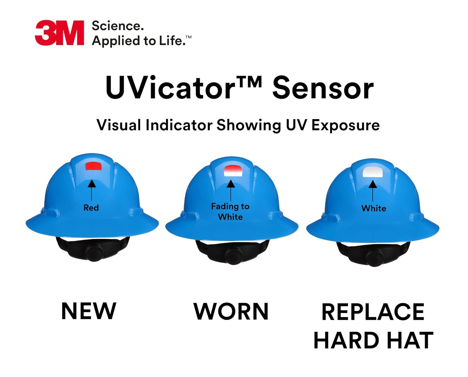 3M Uvicator UV Sensor: An integrated visual safety indicator that changes from red to white as it absorbs UV radiation, providing a clear signal for when the shell needs replacement due to sun damage.