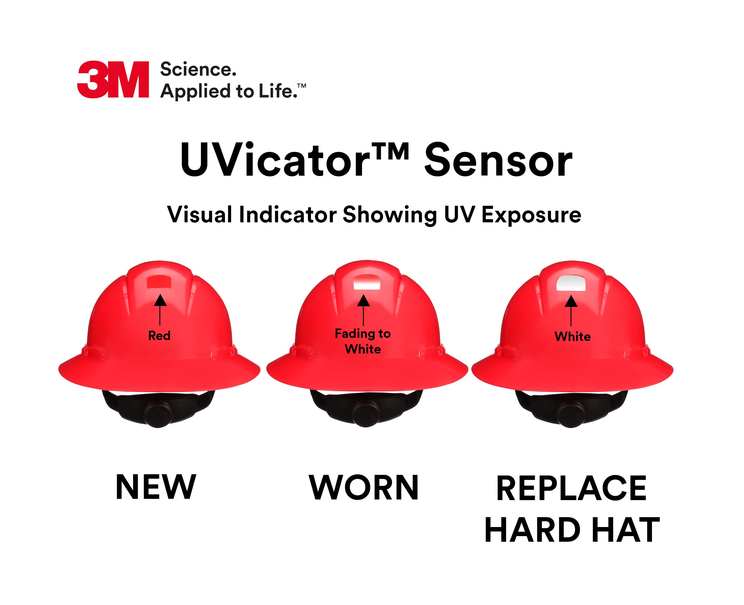 3M Uvicator UV Sensor: An integrated visual safety indicator that changes from red to white as it absorbs UV radiation, providing a clear signal for when the shell needs replacement.