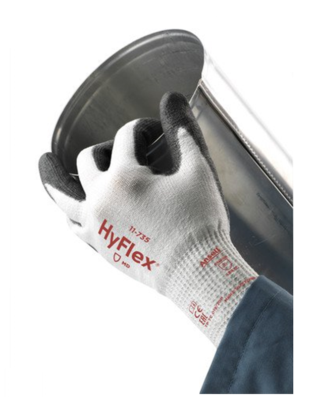 Ansell HyFlex® 11‑735 cut‑resistant gloves with INTERCEPT™ tech and PU palm deliver ANSI A4 protection, abrasion resistance, and dexterity for industrial tasks.