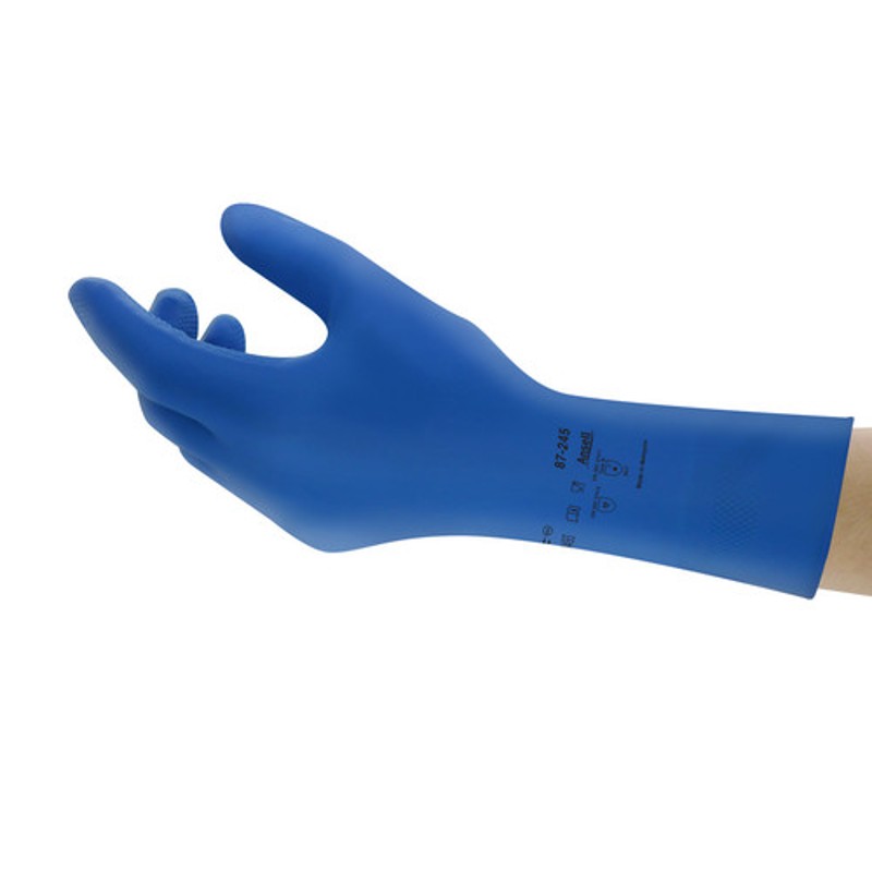 Shop Ansell AlphaTec 87-245 reusable latex gloves. Food safe, flock-lined, and superior grip for industrial cleaning. Buy online for safe handling.
