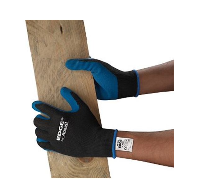 Ansell EDGE 48-305 gloves – granulated natural latex coated polyester for superior grip, comfort, and durability. Perfect for industrial & construction tasks.