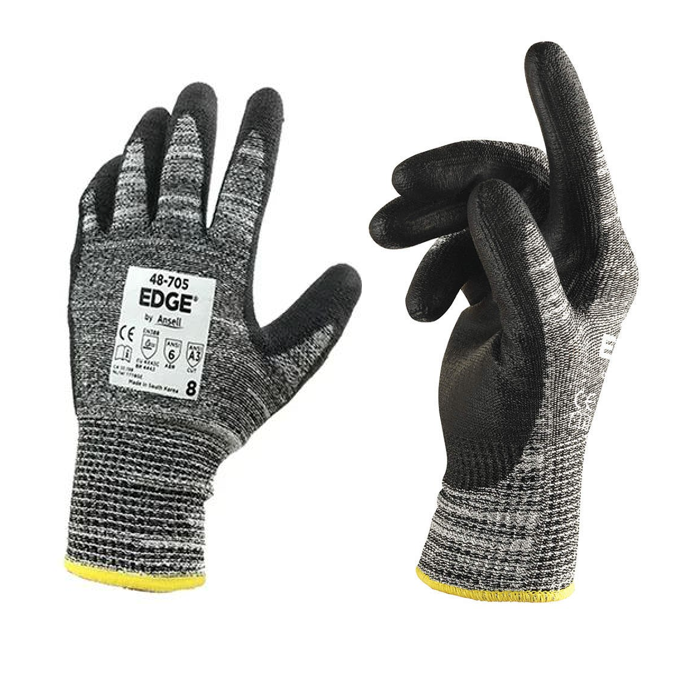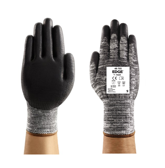 Ansell EDGE® 48‑705 cut and abrasion‑resistant gloves with PU palm offer secure grip, high durability, flexible fit for industrial handling and mechanical tasks