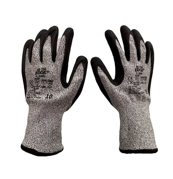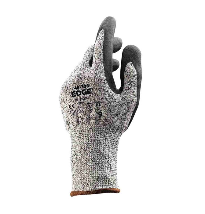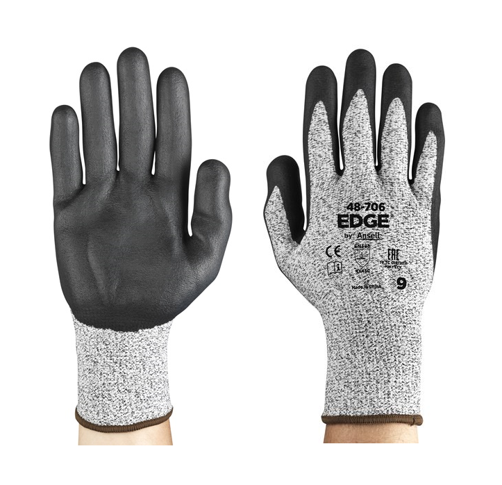 Ansell EDGE® 48‑706 cut and abrasion‑resistant gloves with nitrile foam palm offer ANSI A3/EN ISO C cut protection, secure grip for industrial tasks.