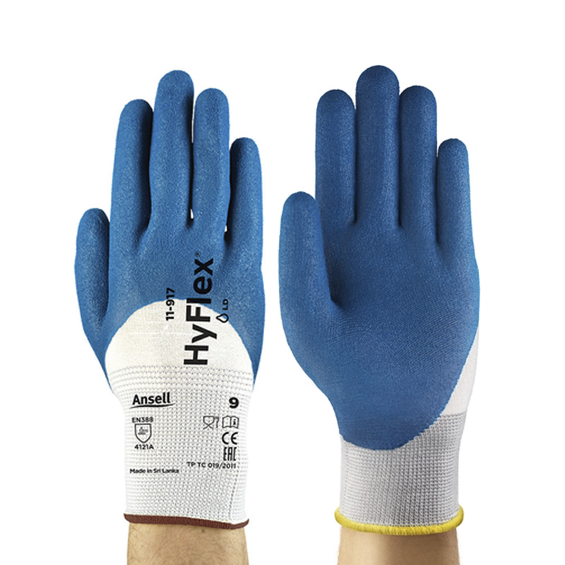 Maximize grip in oily conditions with Ansell HyFlex 11-917. 3/4 nitrile coating for knuckle protection and flexibility. Order your pair today!