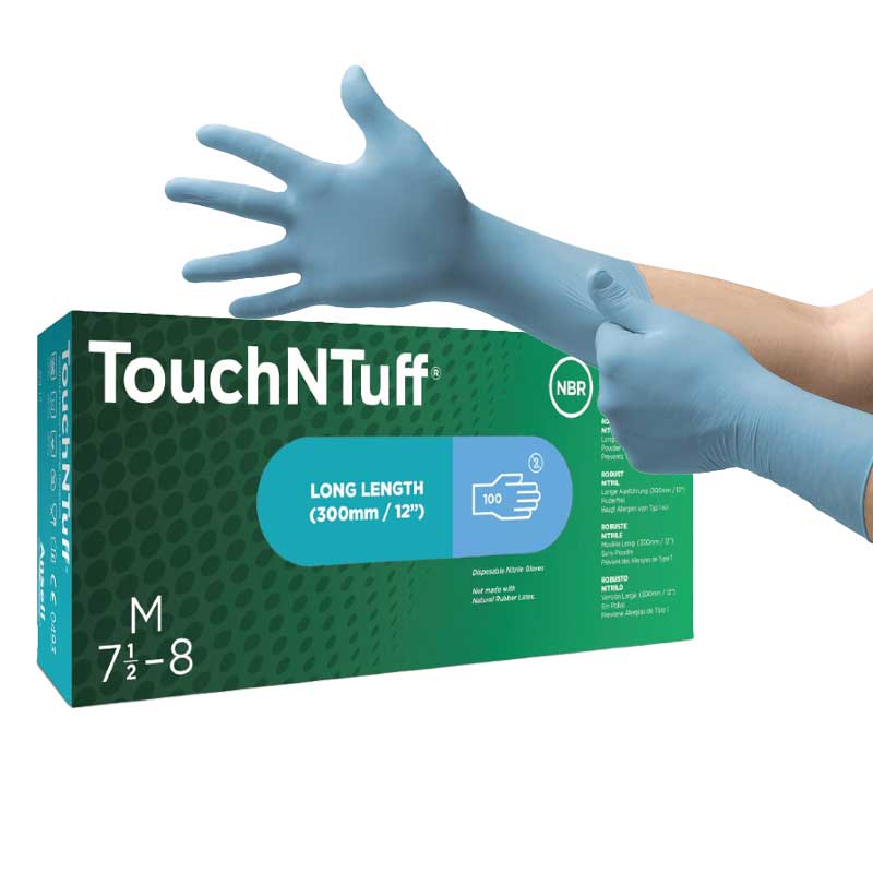 Shop Ansell TouchNTuff 92-665 extended cuff gloves. 300mm length for maximum splash protection. Puncture-resistant & silicone-free. Buy today!