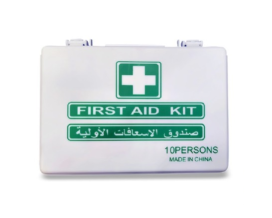 The Economy Workplace First Aid Kit (1-10 Person) includes all sterile dressings, plasters, wipes, and gloves recommended by the HSE for small teams.