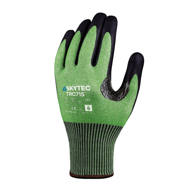 Shop Skytec TRC715. Sustainable recycled polyester liner with steel fibre for Level E cut protection and nitrile foam grip. Eco-friendly safety PPE.
