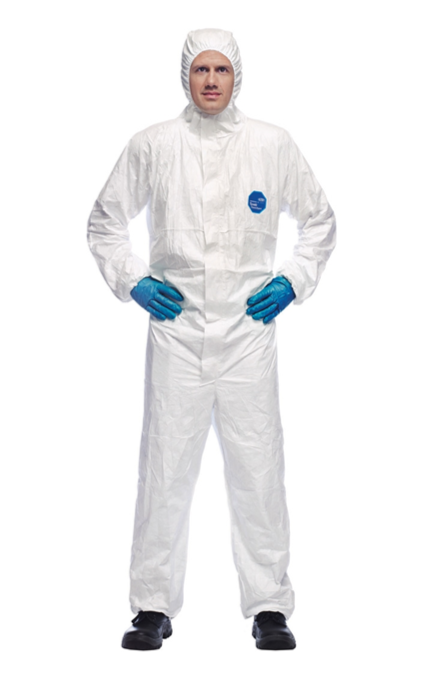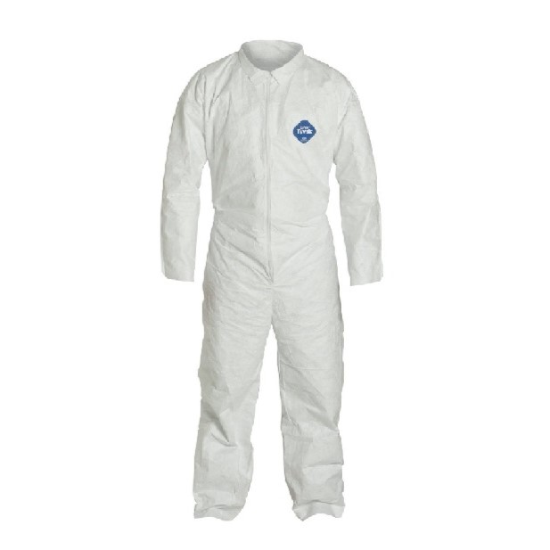 Dupont Tyvek 100 Disposable Protective Coverall Comfort Fit Design. Collar. Open Wrists and Ankles. Elastic Waist. Serged Seams.