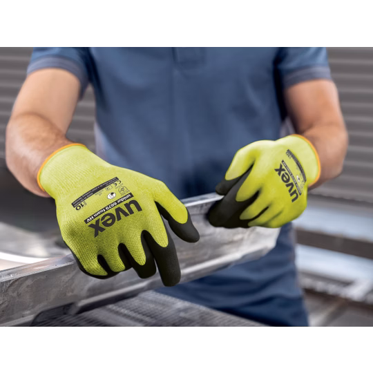 Enhance safety with Uvex unidur 6679 foam HV gloves. High-visibility yellow with NBR foam grip and Level 3/B cut protection. Shop uvex PPE today!